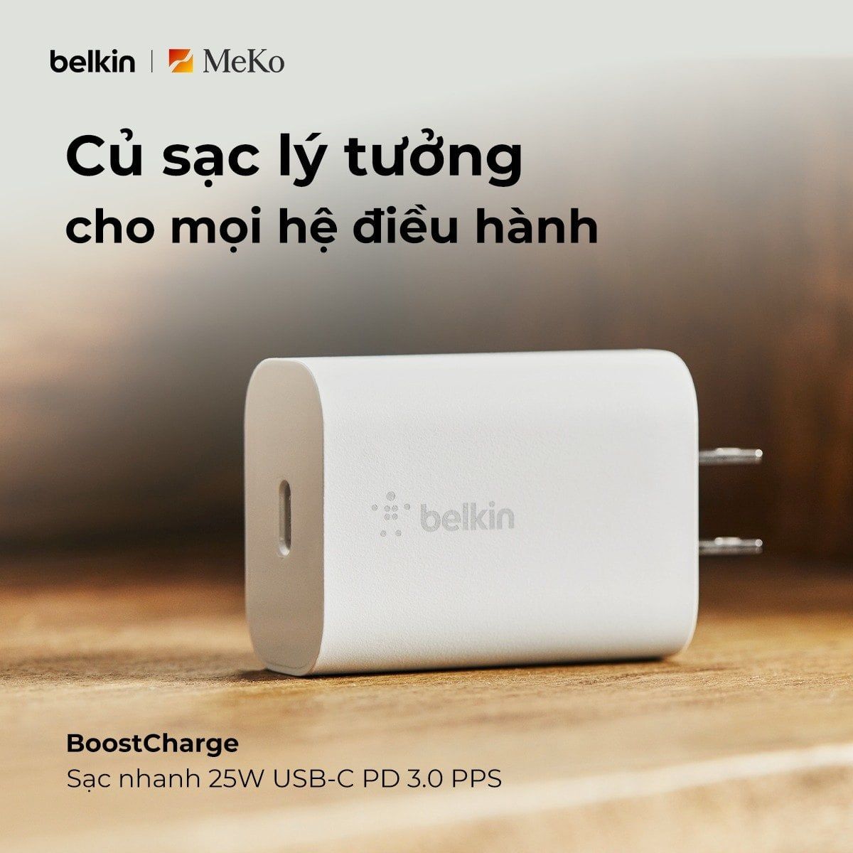 Adapter sạc nhanh Belkin BOOSTCHARGE 25W USB-C PD PPS WCA004